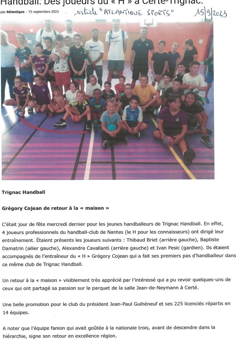 Le week-end dernier, le Trignac handball (THB) a continué de présenter les équipes jeunes au public, venu en masse. Samedi, les deux équipes U13 féminine et U12 masculine ont foulé le terrain avant la rencontre des seniors masculins 1 qui jouaient contre Sud Mayenne. L’équipe senior a brillamment gagné son match, 32/25.